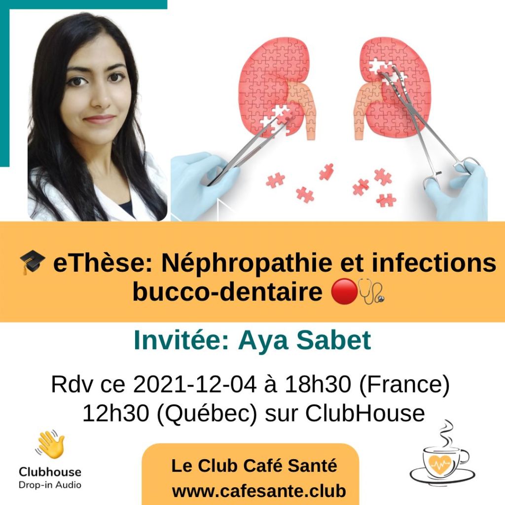 Aujourd’hui samedi 04-12-2021, nous aurons l’opportunité d’écouter Aya Sabet docteure en médecine dentaire fraîchement diplômée en Algérie qui va nous presenter son travail de thèse intitulé :